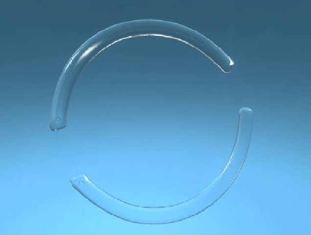 Los segmentos tienen distintos arcos de curvatura, distintos diámetros y grosores y están compuesto de un material trasparente biocompatible.