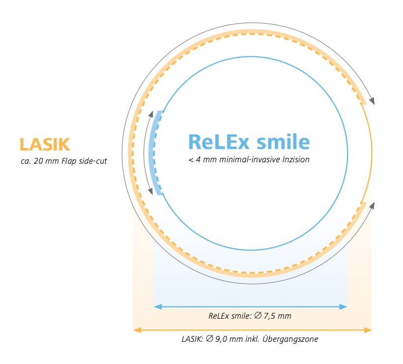 Son muchas las ventajas sobre las técnicas Lasik y Femto-LASIK, entre ellas mayor comodidad durante la intervención, más seguridad (la córnea queda más resistente y con menor riesgo de complicaciones al frotarse o golpearse el ojo) y menor incidencia de aparición de ojo seco tras la intervención. Todo ello, gracias a que ReLEx SMILE evita tener que hacer un corte tan amplio en la córnea, que al seccionar muchas terminaciones nerviosas disminuye la producción de lágrima y ocasiona sequedad ocular de la que se quejan muchos pacientes operados con las técnicas Lasik y Femto-LASIK.